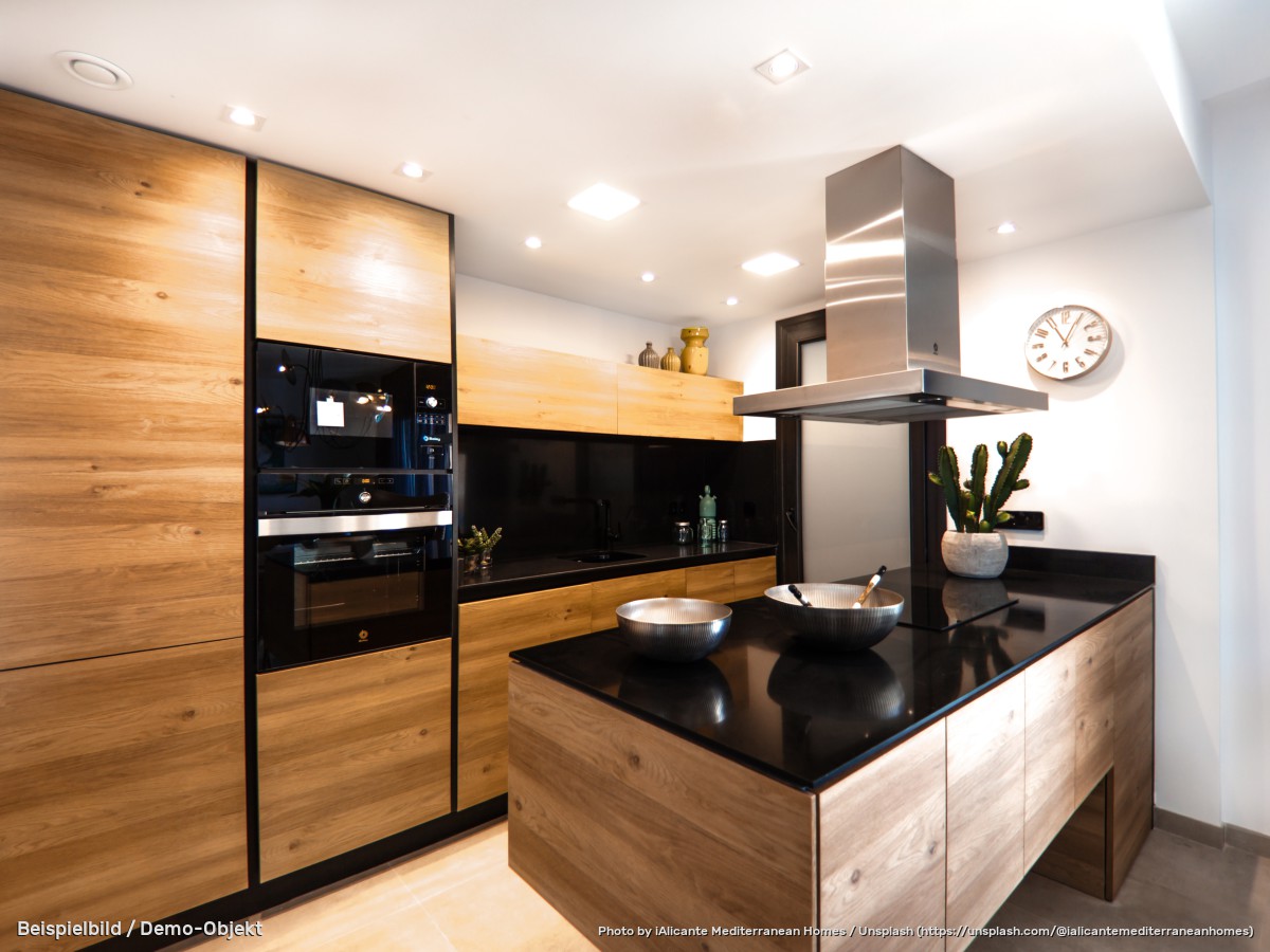 Die Immobilie kann mit diversen gestalterischen Highlights aufwarten: Beispielhaft sind zu nennen sind hier ein durchdachtes Farbkonzept nach Designvorlagen, moderne Holztreppen, hellgrauer Sichtbeton im Industrial Style mit Fußbodenheizung sowie die von einem Bootsbauer individuell angefertigte Holzvertäfelung von Wand und Türen – alles genau abgestimmt auf die hell lasierte Holzbalkendecke.